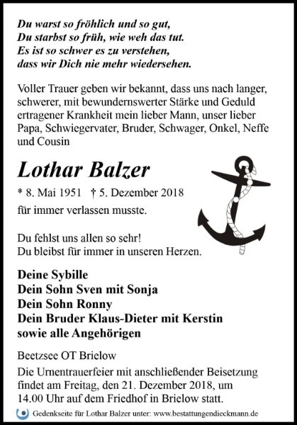 Lothar Balzergestorben am 5. Dezember 2018