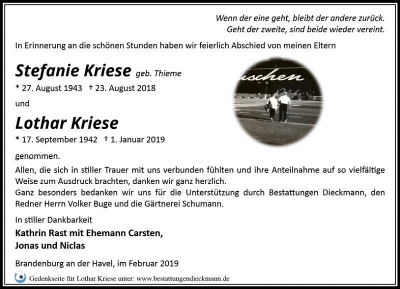 gestorben am 1. Januar 2019 in Brandenburg an der Havel