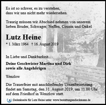 gestorben am 16. August 2019 in Wenzlow