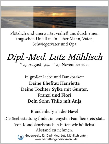 Dipl.-Med. Lutz Mühlischgestorben am 23. November 2021