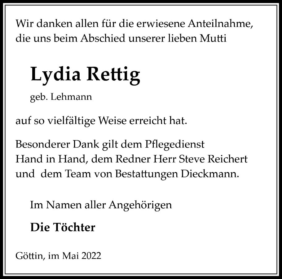 Lydia Rettig geb. Lehmann