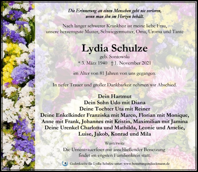Lydia Schulzegestorben am 1. November 2021