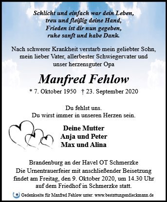 in diesen Tagen fühlen wir mit Ihnen und wünschen Ihnen von Herzen, dass Sie aus den glücklichen Erinnerungen Kraft schöpfen, um positiv in die Zukunft zu gehen. Diese Gedenkseite möge Ihnen dabei helfen, Ihre Trauer zu teilen und das Andenken gemeinsam wachzuhalten.