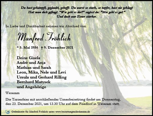 gestorben am 9. Dezember 2021 in Brandenburg an der Havel OT Kirchmöser