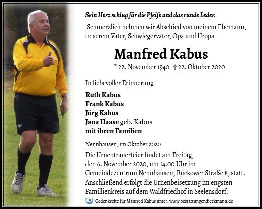 Urnentrauerfeier, Gemeindezentrum Nennhausen