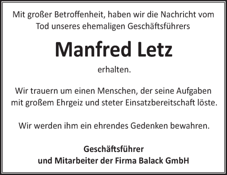 Manfred Letzgestorben am 19. August 2019