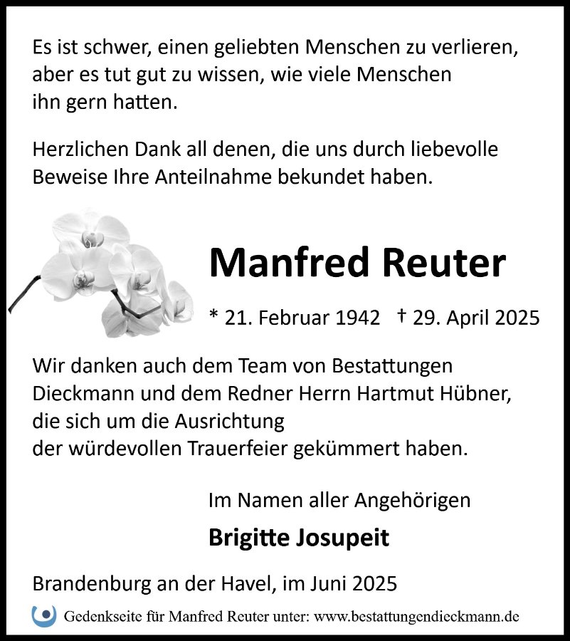 Manfred Reutergestorben am 29. April 2025