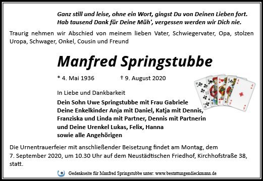 Wir denken an Dich, wenn es im Garten blüht, wenn die Früchte reifen und wenn die Sonne lacht oder wenn wir Karten spielen... In immer währender lieber Verbundenheit...