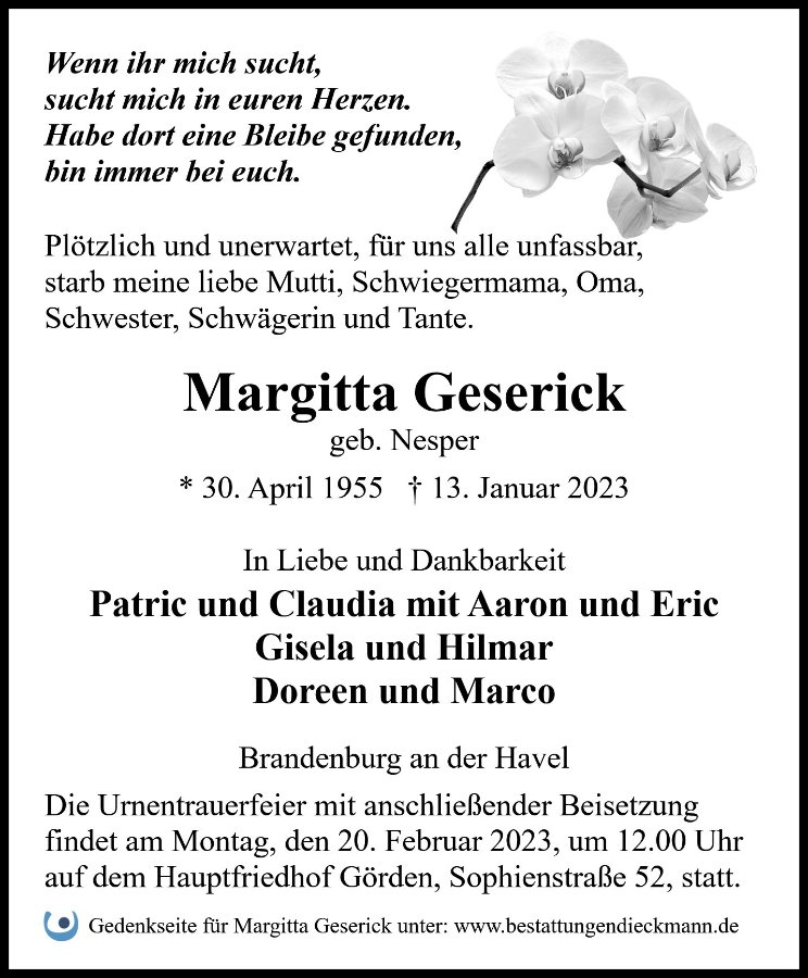 gestorben am 13. Januar 2023 in Brandenburg an der Havel