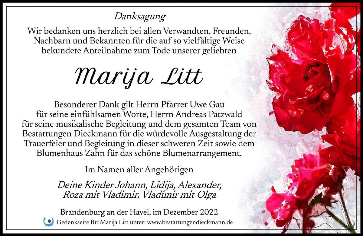 Marija Littgestorben am 2. Dezember 2022