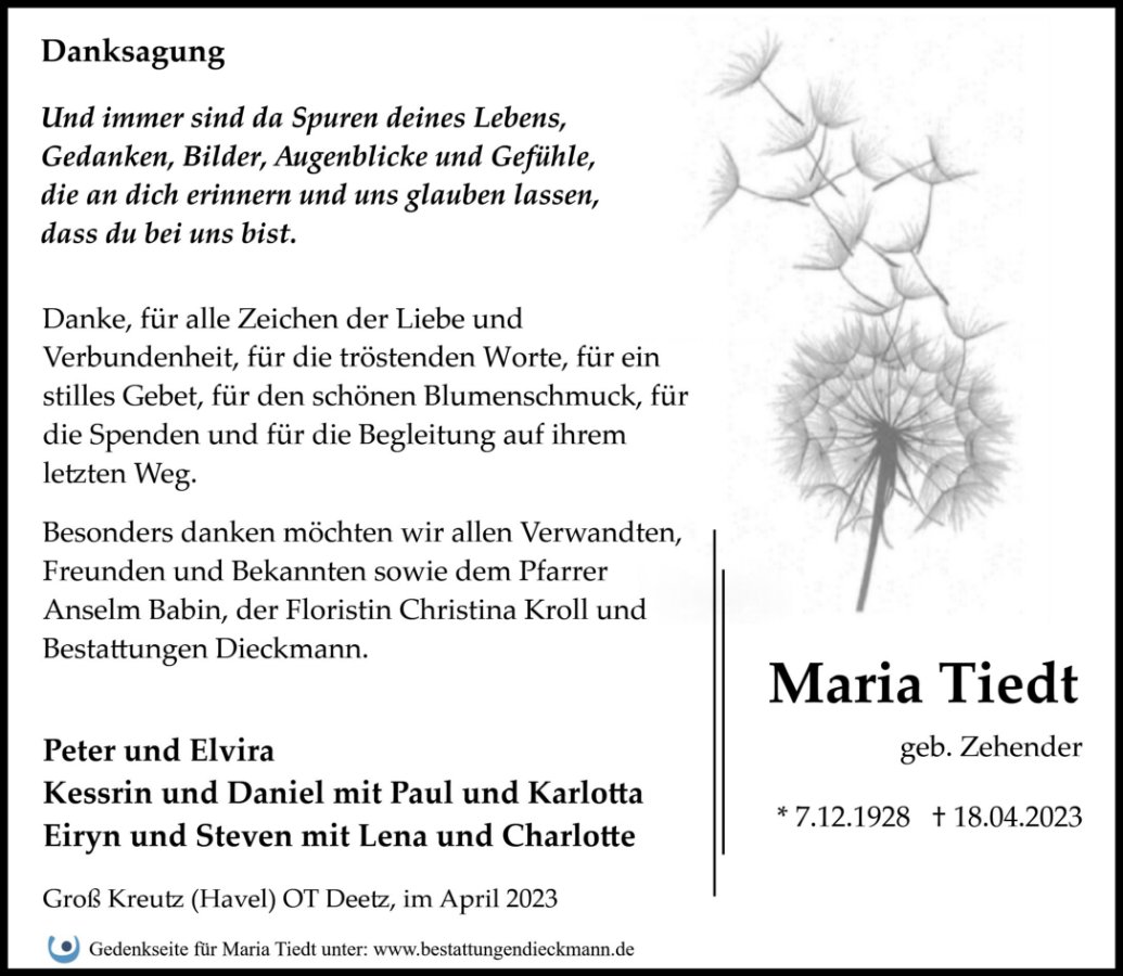 Maria Tiedt geb. Zehender