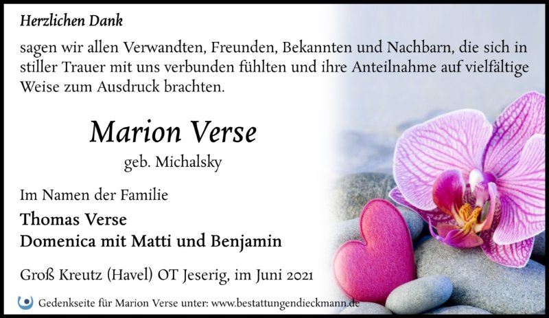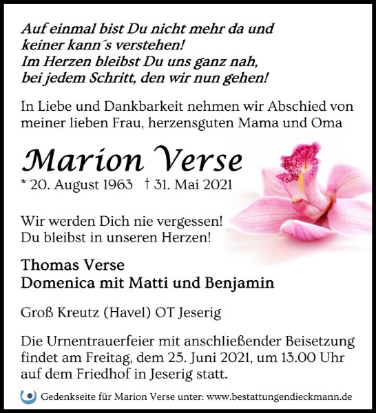 gestorben am 31. Mai 2021 in Groß Kreutz (Havel) OT Jeserig