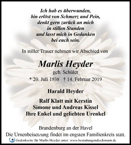 gestorben am 14. Februar 2019 in Brandenburg an der Havel