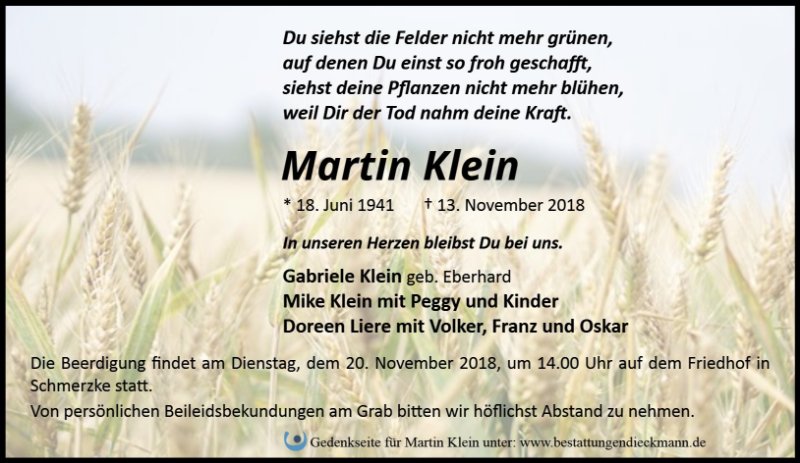 gestorben am 13. November 2018 in Brandenburg an der Havel OT Schmerzke