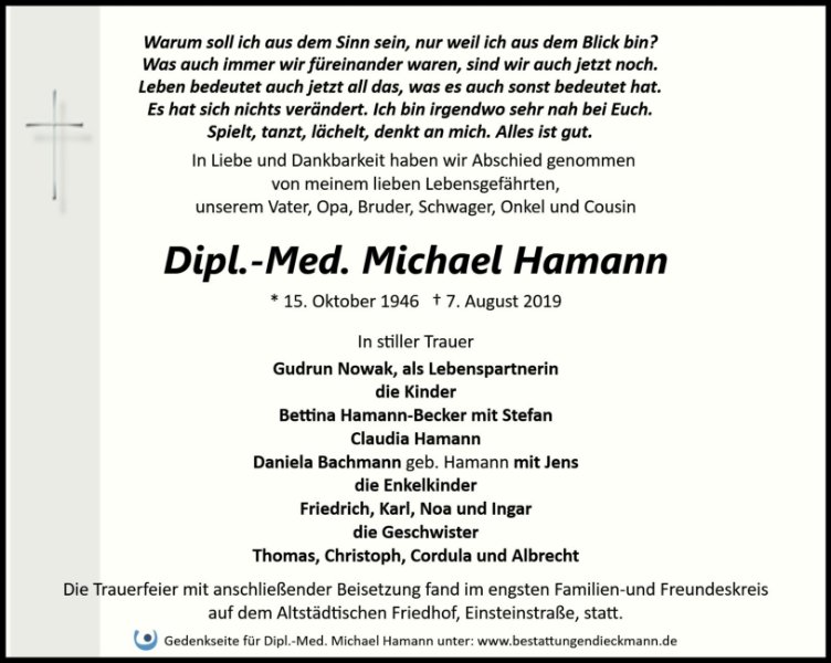 Liebe Familie von Dipl.-Med. Michael Hamann,