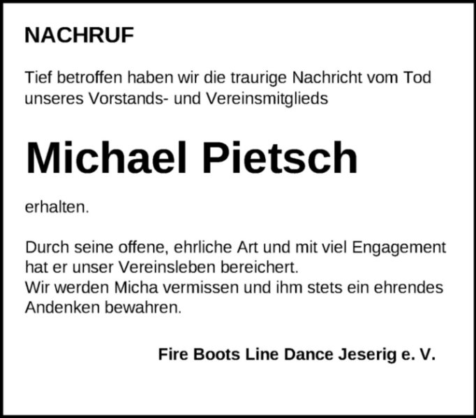 Michael Pietschgestorben am 27. Oktober 2020