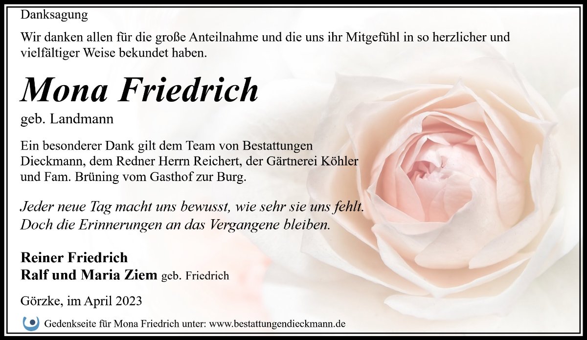 Mona Friedrichgestorben am 6. April 2023