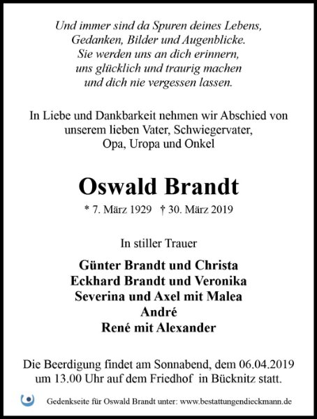 Liebe Familie von Oswald Brandt ,