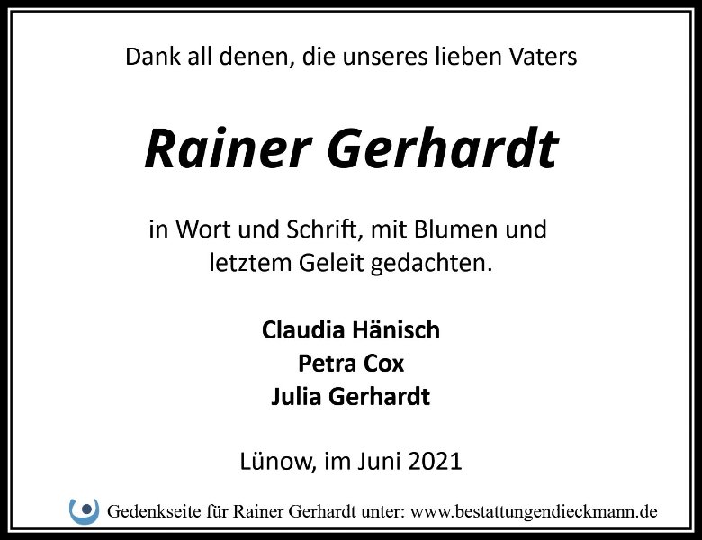 Rainer Gerhardtgestorben am 5. Mai 2021