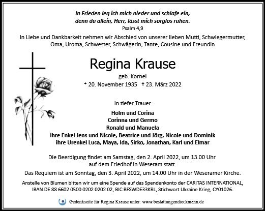 Ihre Trauer zu teilen und das Andenken gemeinsam wachzuhalten.