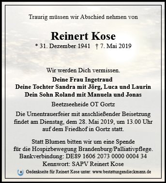 gestorben am 7. Mai 2019 in Beetzseeheide OT Gortz