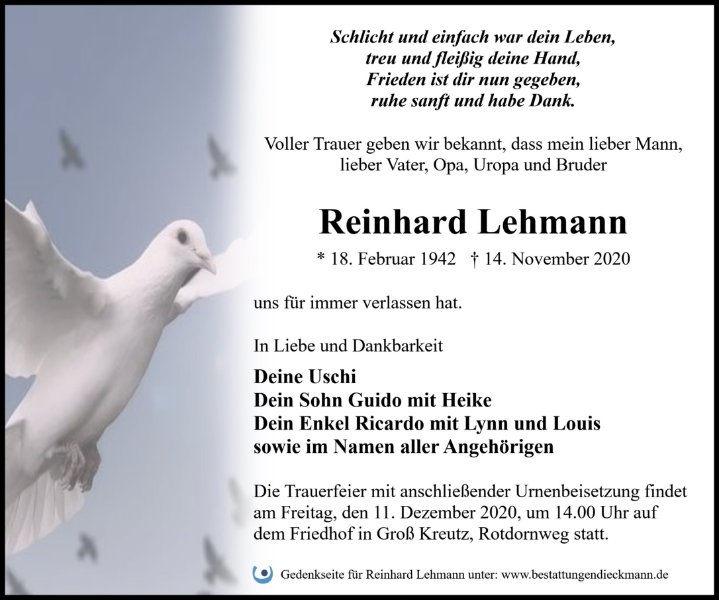 Reinhard Lehmanngestorben am 14. November 2020
