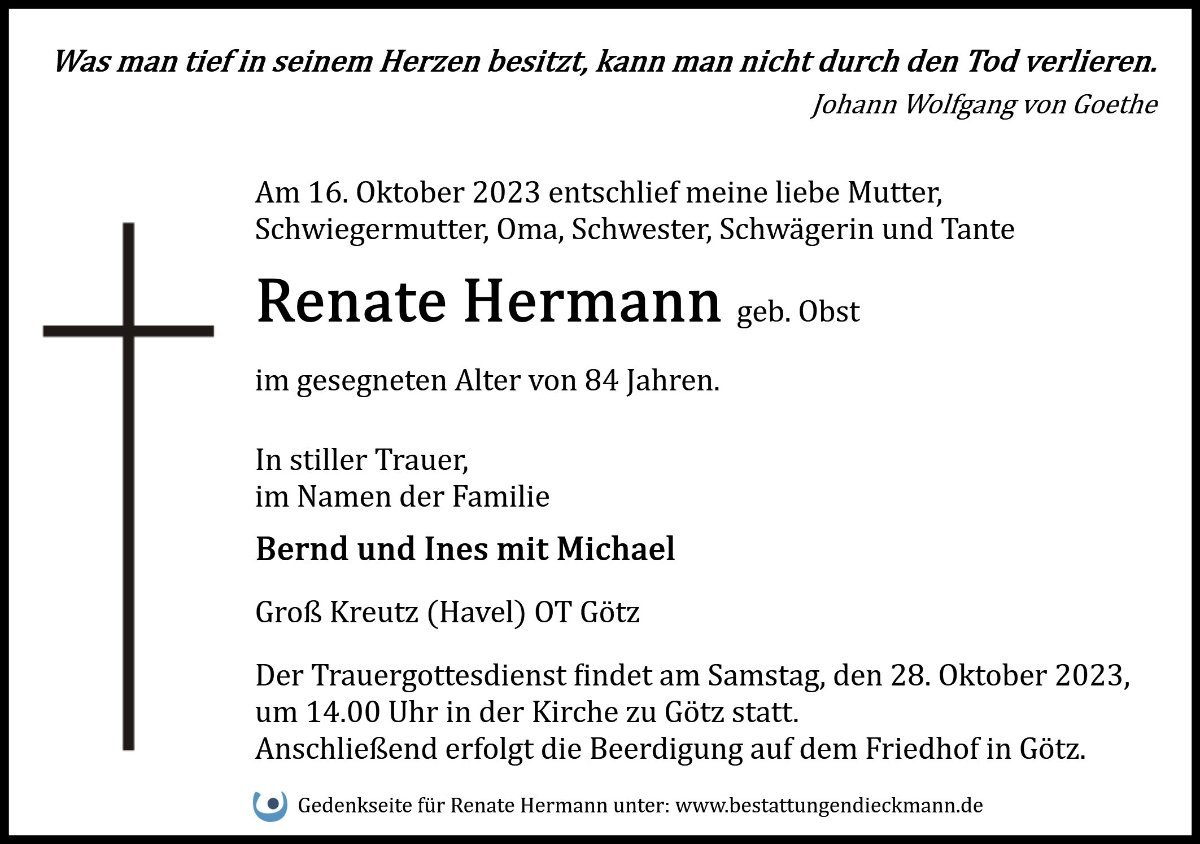 Renate Hermanngestorben am 16. Oktober 2023