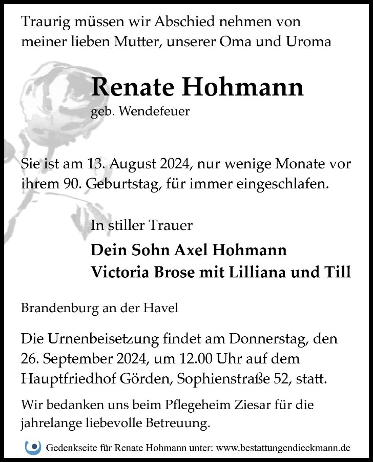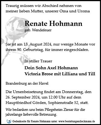 in diesen Tagen fühlen wir mit Ihnen und wünschen Ihnen von Herzen, dass Sie aus den glücklichen Erinnerungen Kraft schöpfen, um positiv in die Zukunft zu gehen. Diese Gedenkseite möge Ihnen dabei helfen, Ihre Trauer zu teilen und das Andenken gemeinsam wachzuhalten.