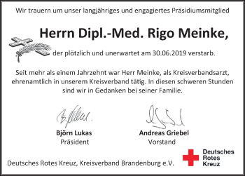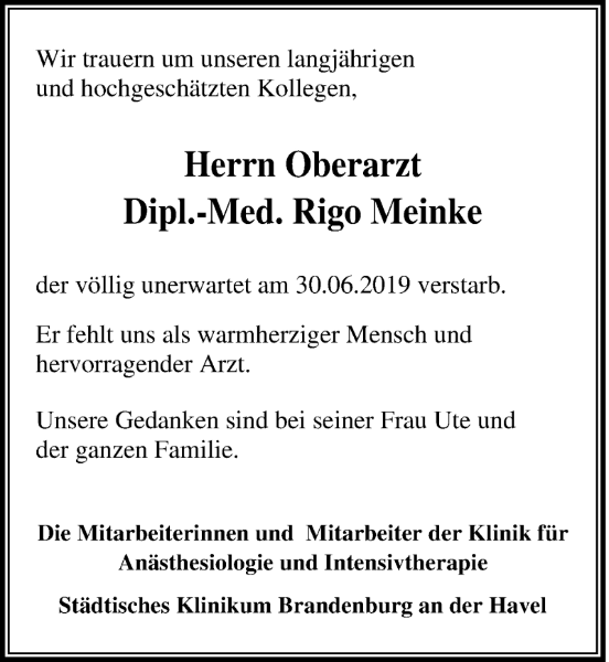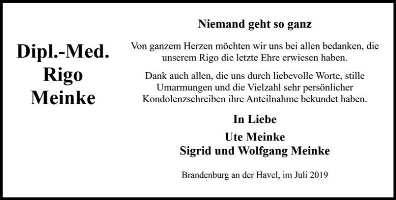 Dipl.-Med. Rigo Meinkegestorben am 30. Juni 2019