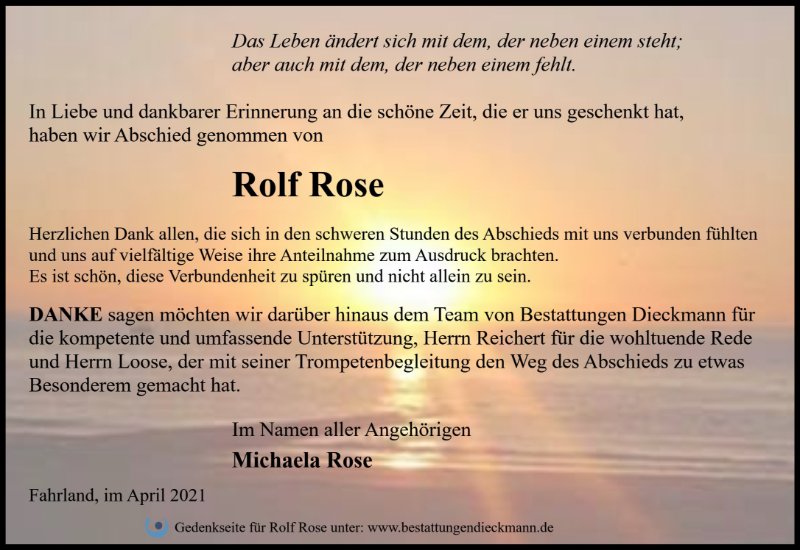 Unser herzliches Beileid übermitteln Andrea Kleinschmidt-Leffs, Ingo Leffs, Jessica und Tobias Kleinschmidt. Er war uns immer ein toller Kollege und Freund.
