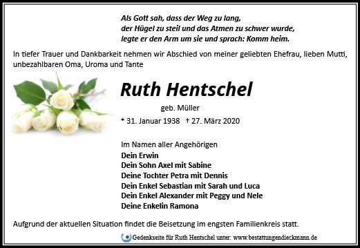 wir wünschen Ihnen für die kommende Zeit viel Kraft und dass es Ihnen gelingt, dankbar auf die positiven Erinnerungen zurückzublicken. Diese Gedenkseite möge Ihnen dabei helfen, Ihre Trauer zu teilen und das Andenken gemeinsam wachzuhalten.