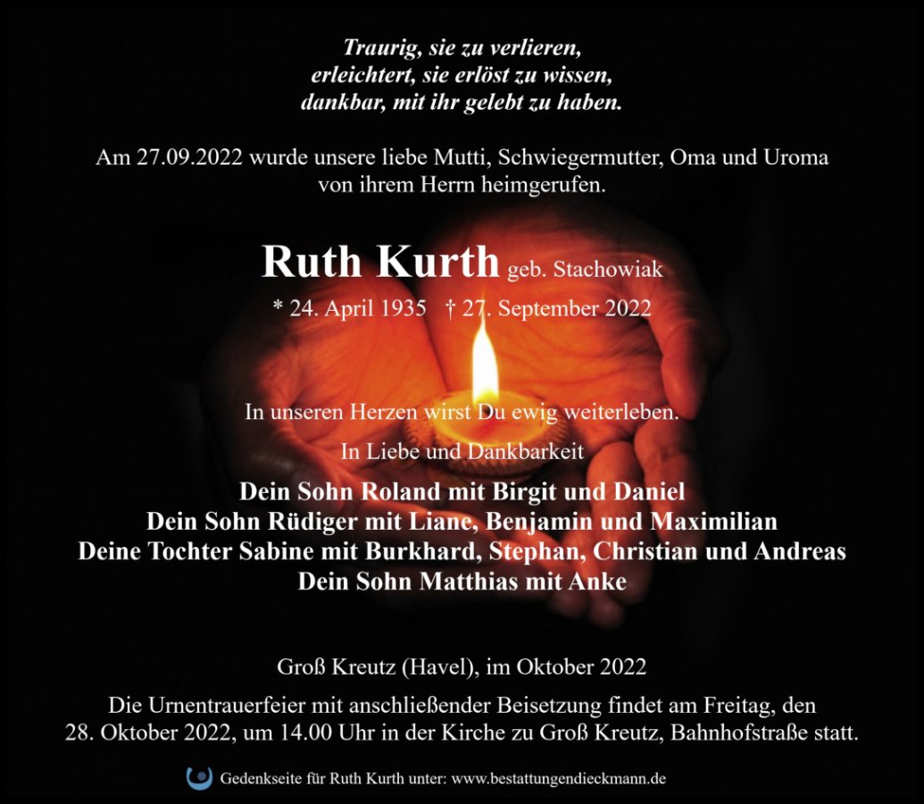 Ruth Kurthgestorben am 27. September 2022