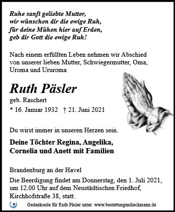 wir wünschen Ihnen für die kommende Zeit viel Kraft und dass es Ihnen gelingt, dankbar auf die positiven Erinnerungen zurückzublicken. Diese Gedenkseite möge Ihnen dabei helfen, Ihre Trauer zu teilen und das Andenken gemeinsam wachzuhalten.