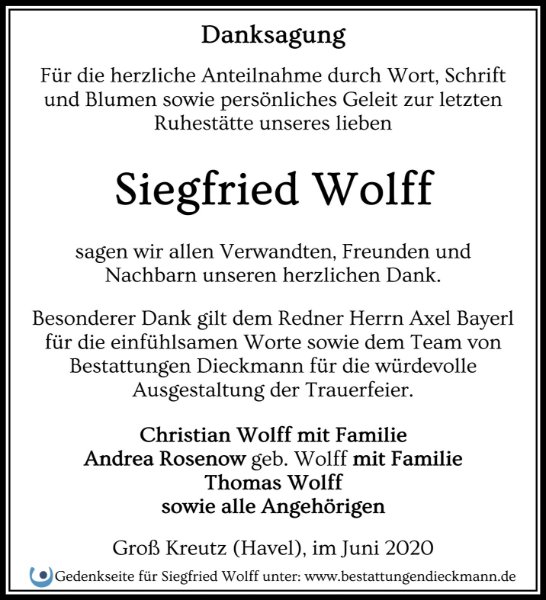 Siegfried Wolffgestorben am 13. Mai 2020