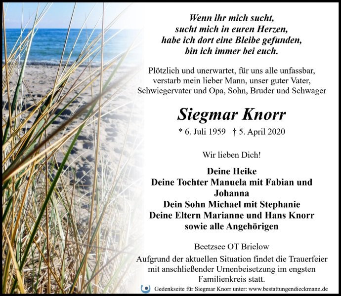 Lesen Sie hier die Anzeigen und Trauerpost!