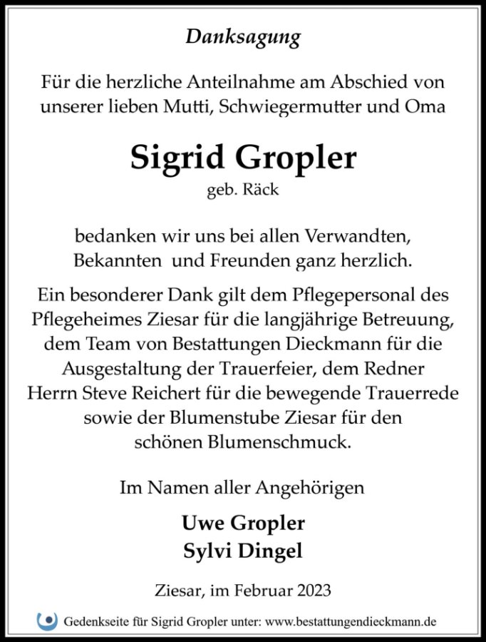 Lesen Sie hier die Anzeigen und Trauerpost!