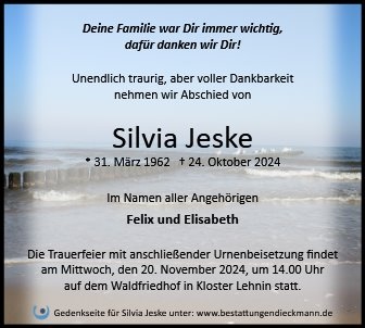 gestorben am 24. Oktober 2024 in Kloster Lehnin OT Lehnin