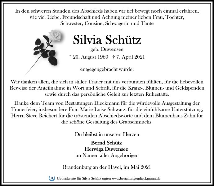 wir wünschen Ihnen für die kommende Zeit viel Kraft und dass es Ihnen gelingt, dankbar auf die positiven Erinnerungen zurückzublicken. Diese Gedenkseite möge Ihnen dabei helfen, Ihre Trauer zu teilen und das Andenken gemeinsam wachzuhalten.