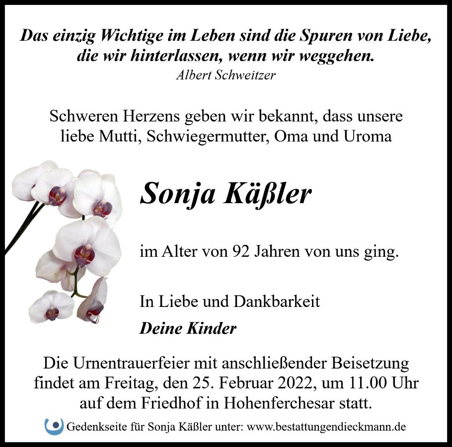 Sonja Käßlergestorben am 22. Januar 2022
