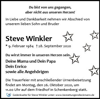 Ein letzter Gruß an Dich! Ich wünsche Dir Frieden und Ruhe wo auch immer Du jetzt bist. Deiner Familie wünsche ich Kraft in diesen schweren Stunden.