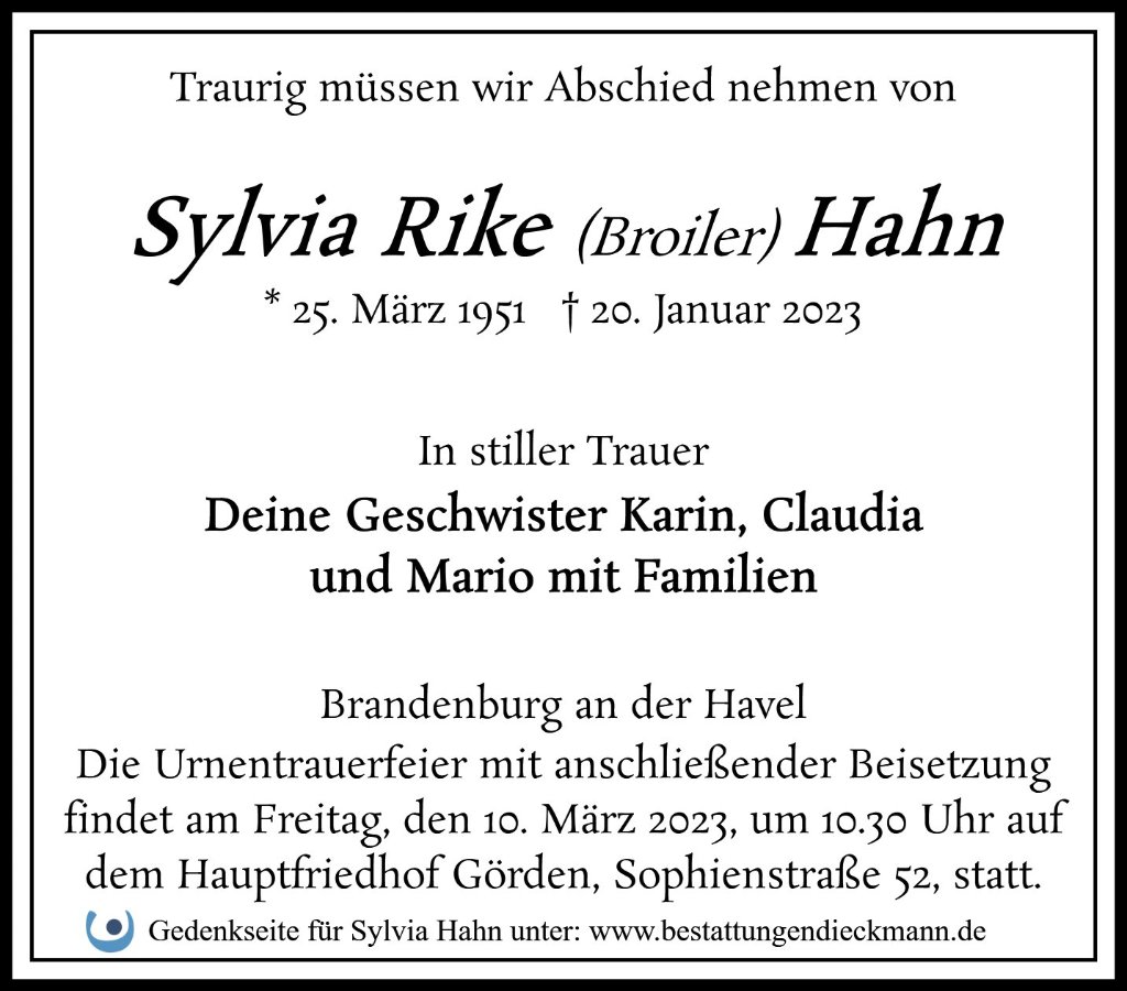 geboren am 25. März 1951 in Brandenburg (Havel)
