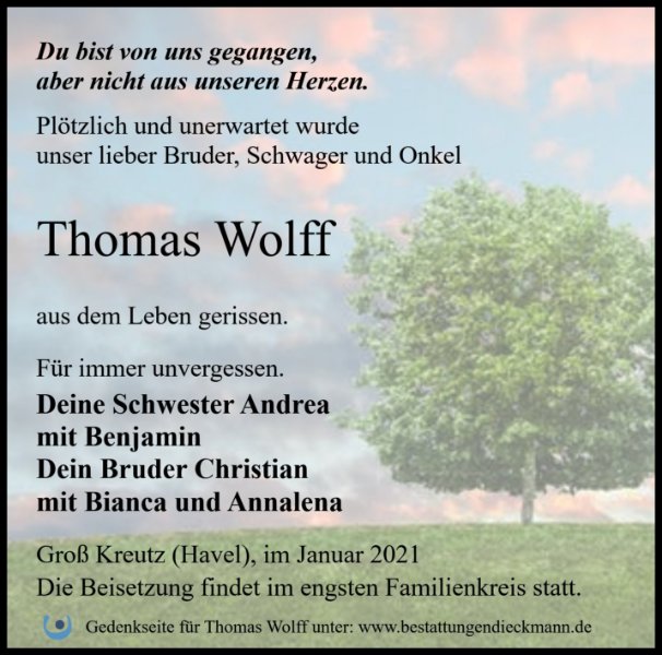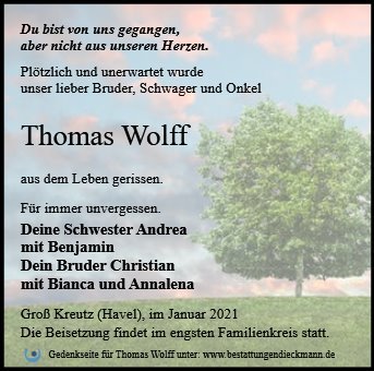 Thomas durften wir über 13 Jahre seines Lebens begleiten und sind sehr bestürzt darüber, die Nachricht über sein Ableben zu hören.