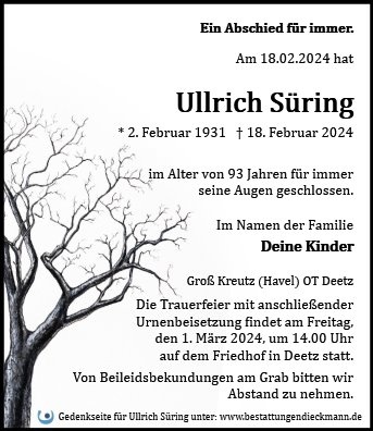 gestorben am 18. Februar 2024 in Kloster Lehnin OT Lehnin