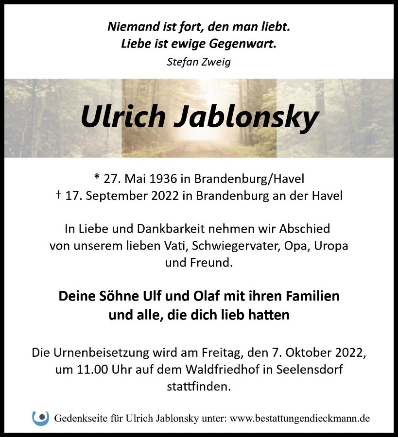 gestorben am 17. September 2022 in Brandenburg an der Havel
