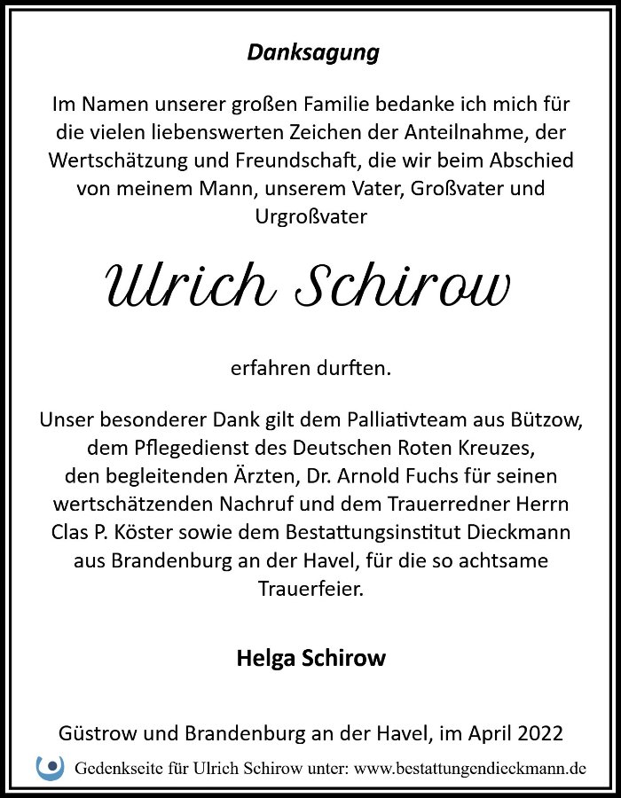 Sehr geehrte Frau Schirow und werte Angehörige,