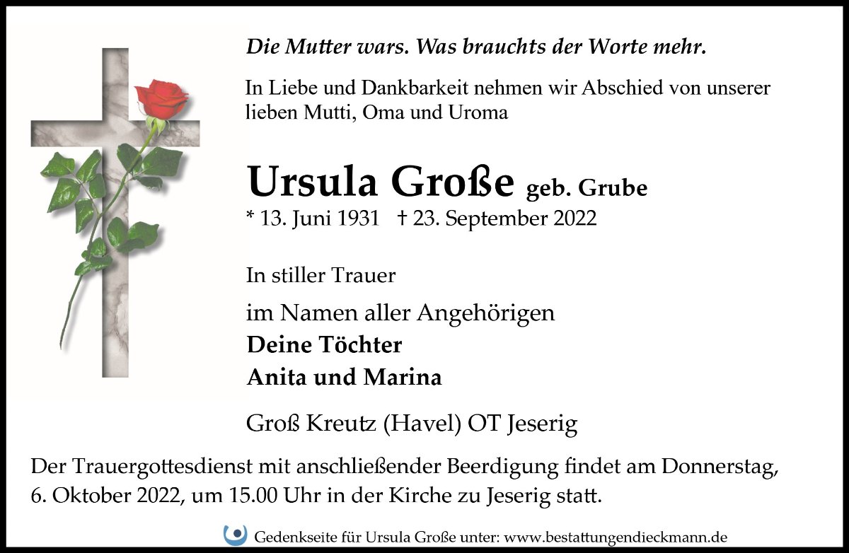 Ursula Großegestorben am 23. September 2022
