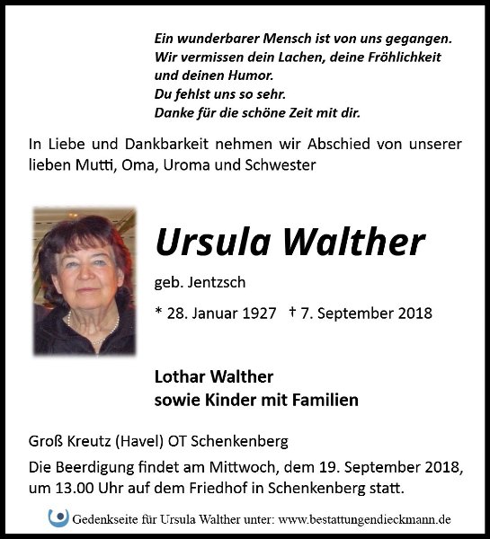 Lesen Sie hier die Anzeigen und Trauerpost!