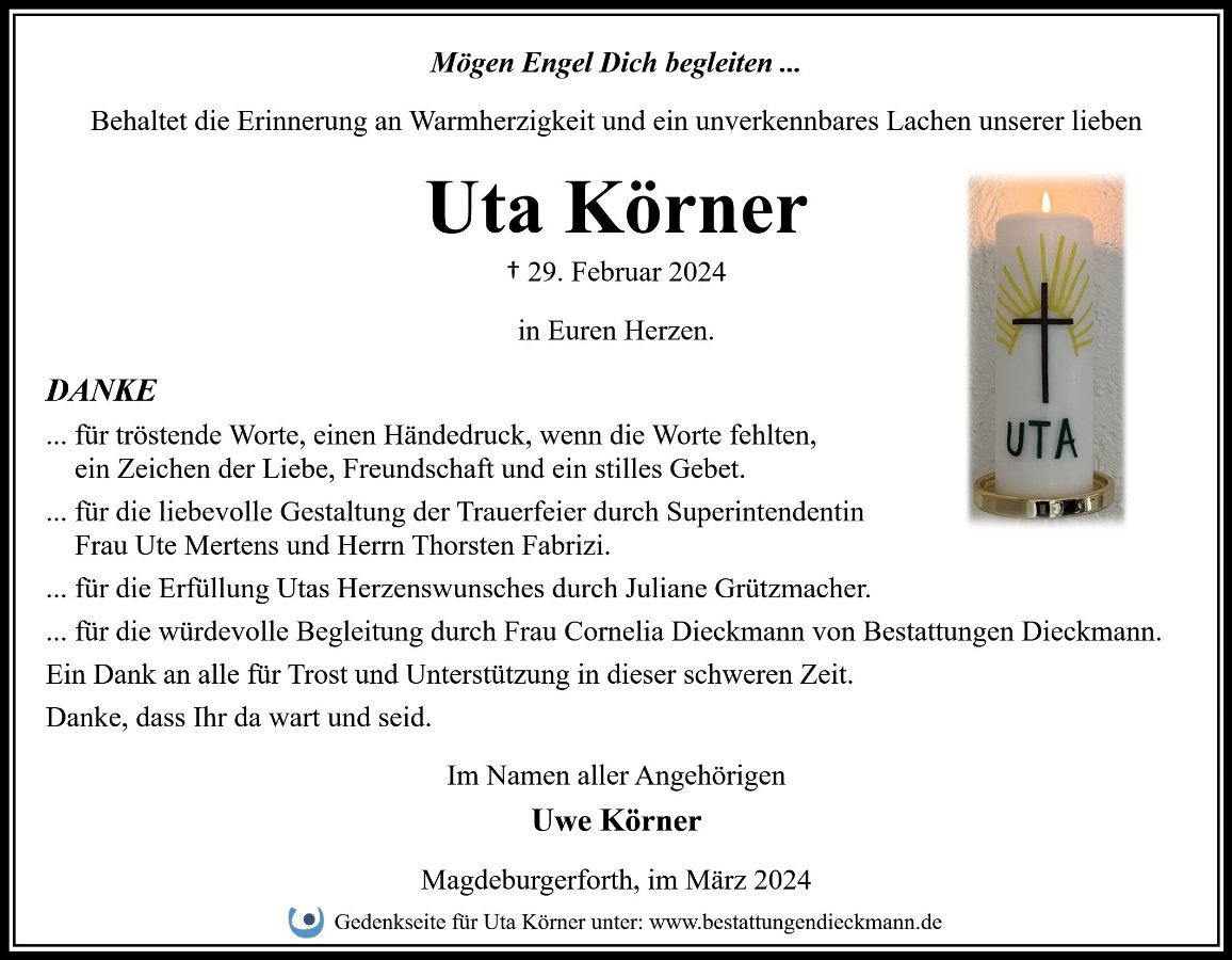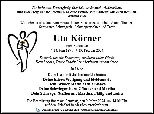 Liebe Uta, schade, dass deine Lebenszeit so kurz war. Es tut mir sehr leid.