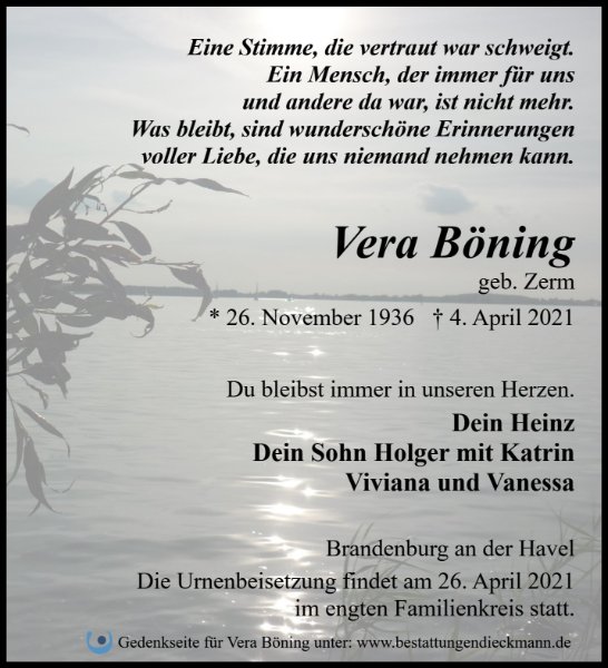 Vera Böninggestorben am 4. April 2021