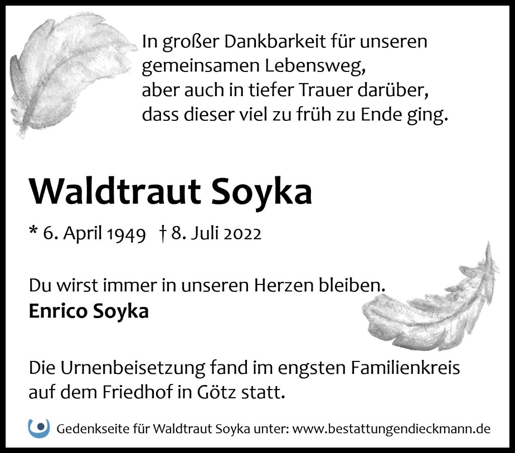 Waldtraut Soykagestorben am 8. Juli 2022